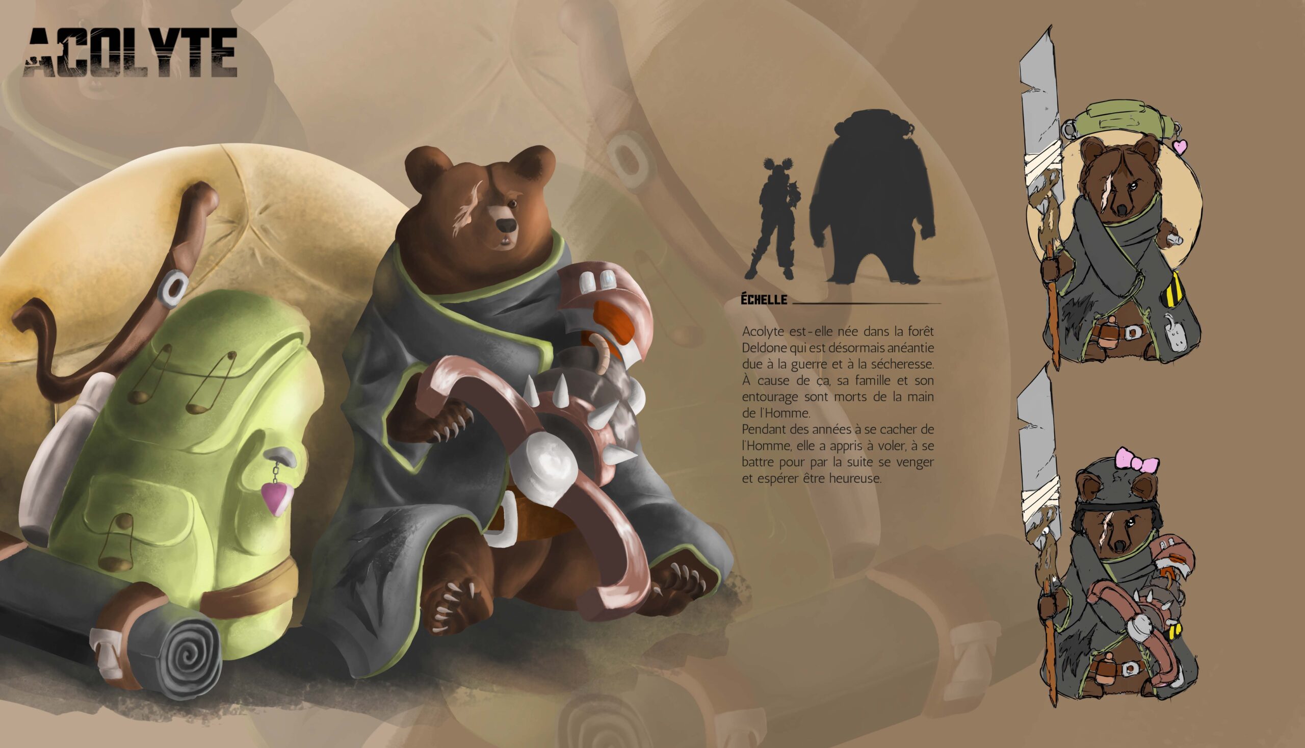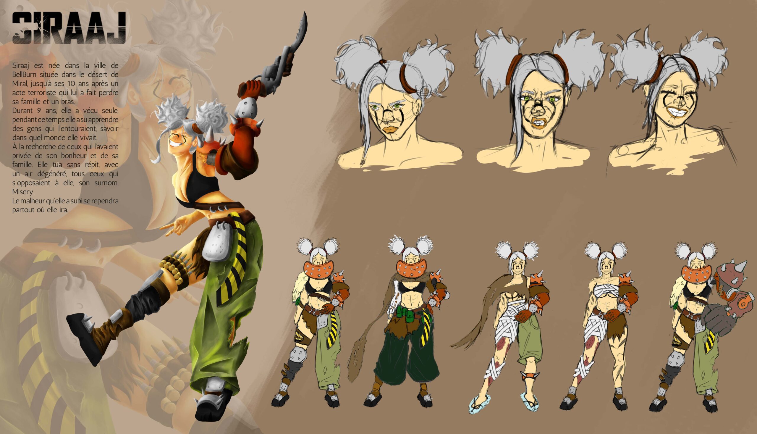Création de plusieurs déclinaisons du personnage, ainsi que de ses accessoires (props). Développement de son ambiance visuelle et de ses différentes expressions.